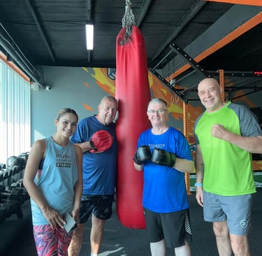 My unique approach to Boxercise blends the invigorating elements of boxing training with mindfulness techniques and stress-busting exercises. As you throw combinations of jabs, crosses & hooks, you'll also be throwing away stress, anxiety, and worries. This isn't about fighting opponents; it's about conquering your inner struggles.