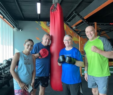 My unique approach to Boxercise blends the invigorating elements of boxing training with mindfulness techniques and stress-busting exercises. As you throw combinations of jabs, crosses & hooks, you'll also be throwing away stress, anxiety, and worries. This isn't about fighting opponents; it's about conquering your inner struggles.
